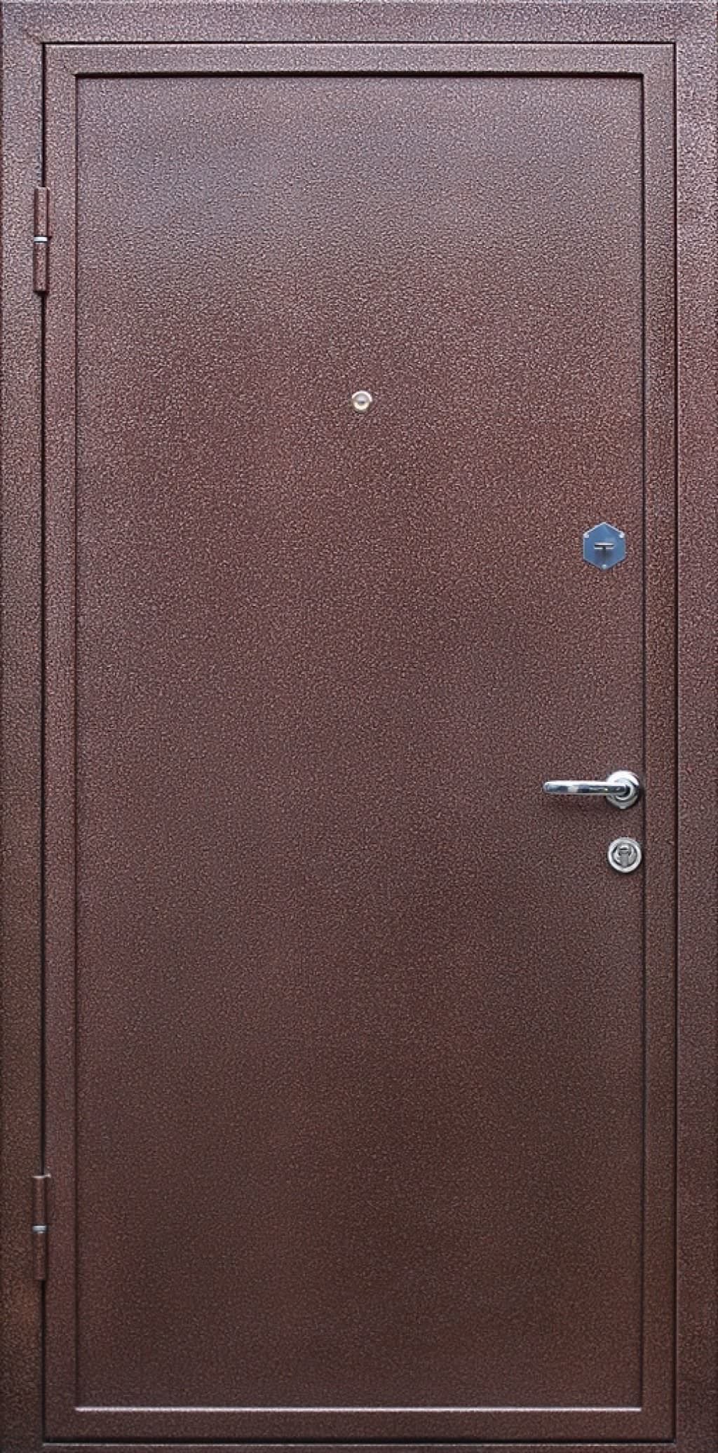 Двери с порошково-полимерным покрытиям относятся к среднему ценовому классу. Но это не значит, что они менее надежные. Для изготовления этих дверей используется металл толщиной до 2,0 мм, в конструкцию можно внести любое количество ребер жесткости (как вертикальных, так и горизонтальных), противосъемные ригели, подобрать замки 3 или 4 класса надежности, хорошие контуры уплотнения. С внутренней стороны дверь можно отделать так же металлом с порошково-полимерным покрытием, а можно поставить ламинат, или сделать обивку винилискожей, можно установить МДФ панель с фрезеровкой или без нее, установить на внутренней панели зеркало – как на всю высоту полотна, так и сделать декор зеркальными вставками. В результате вы получите надежную и красивую дверь, которая надежно защитит ваш дом от холода, шума, непрошеных гостей и станет достойным элементом интерьера вашего жилища.