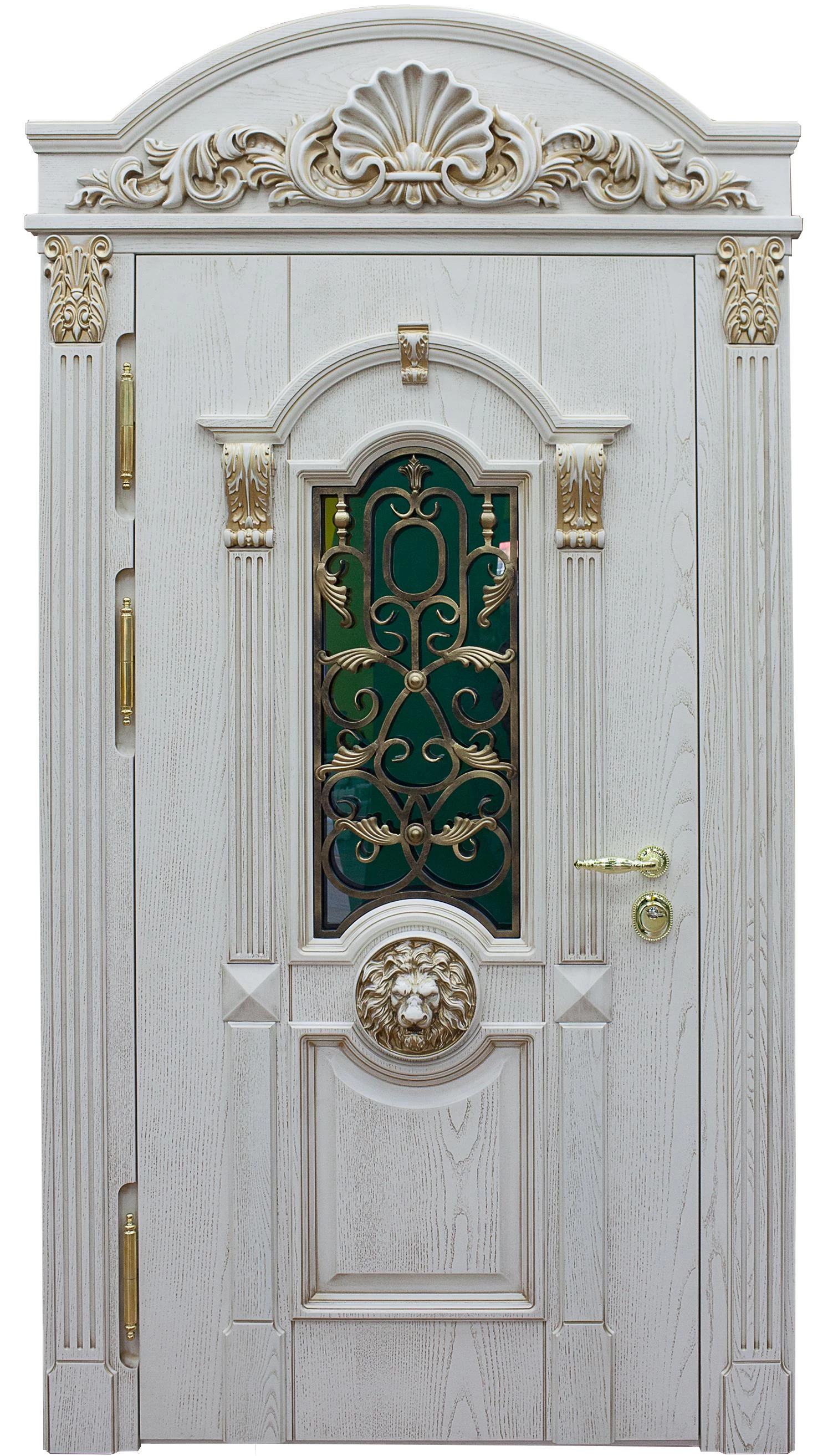 Поговорим об отделке. Вариантов декора дверей много. В большинстве случаев, для отделки элитных дверей используется массив натурального дерева или натуральный шпон с фрезеровкой. Цвет двери так же делается по желанию заказчика. Очень красиво и представительно выглядят двери с ковкой и стеклом.
