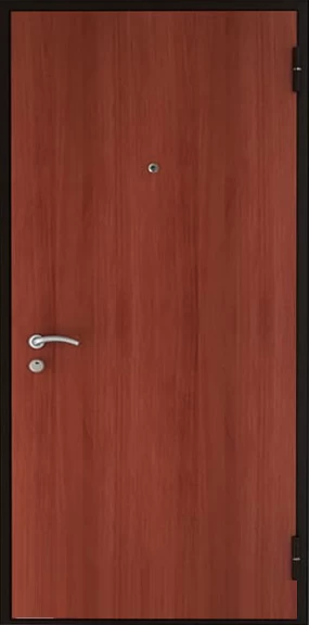 Ламинат - это доска из ДВП толщиной 4-5 мм с четырехслойным покрытием. Визуально он не отличается от натуральной древесины. Рисунок ламинированной доски может быть гладким и имитировать древесный спил или рельефным, имитирующим структуру дерева. Разнообразная цветовая гамма этого материала позволяет изготовить дверь, которая будет отлично смотреться в интерьере как квартиры, так и офиса.