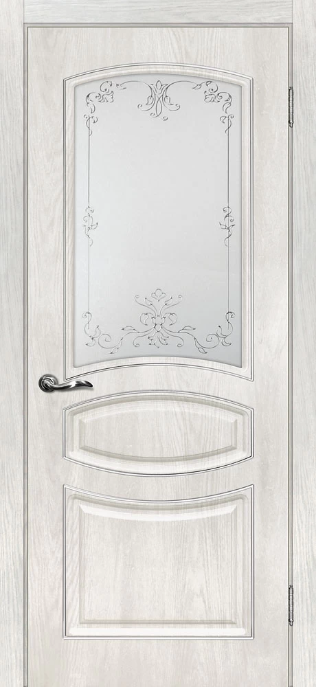 Качественная Межкомнатная дверь Сиена-5 Дуб жемчужный продается по цене 11 989 руб. за полотно. Доступные размеры 550x1900, 600x1900, 600x2000, 700x2000, 800x2000, 900x2000. Так же в наличии большой выбор комплектующих к данной модели, подходящих по цвету и фактуре.
