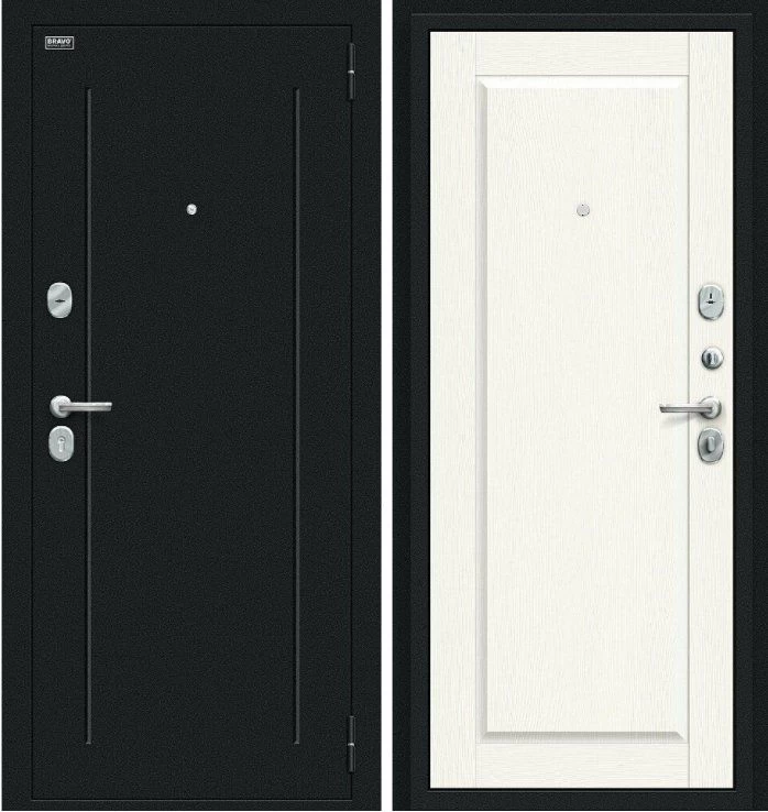 Надежная входная Дверь Браво Сьют Kale Букле черное White Wood премиум класса по цене 36 517 руб. Большая толщина стали защитит от проникновения в ваш дом, квартиру или коттедж. Используется очень качественная фурнитура: замки, цилиндры, ручки, защелки. Покрытие и отделка двери изготовлено под внимательным контролем производителя. Дверь имеет долгий срок службы и гарантию.