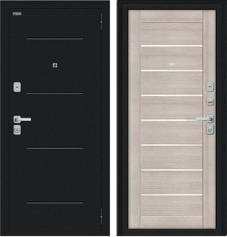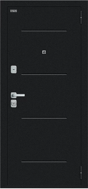 Надежная входная Дверь Браво Техно/BChrome Букле черное/Cappuccino Melinga премиум класса по цене 33 147 руб. Большая толщина стали защитит от проникновения в ваш дом, квартиру или коттедж. Используется очень качественная фурнитура: замки, цилиндры, ручки, защелки. Покрытие и отделка двери изготовлено под внимательным контролем производителя. Дверь имеет долгий срок службы и гарантию.