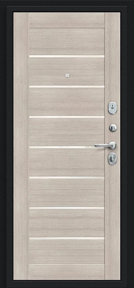 Надежная входная Дверь Браво Техно Букле черное/Cappuccino Veralinga премиум класса по цене 31 397 руб. Большая толщина стали защитит от проникновения в ваш дом, квартиру или коттедж. Используется очень качественная фурнитура: замки, цилиндры, ручки, защелки. Покрытие и отделка двери изготовлено под внимательным контролем производителя. Дверь имеет долгий срок службы и гарантию.