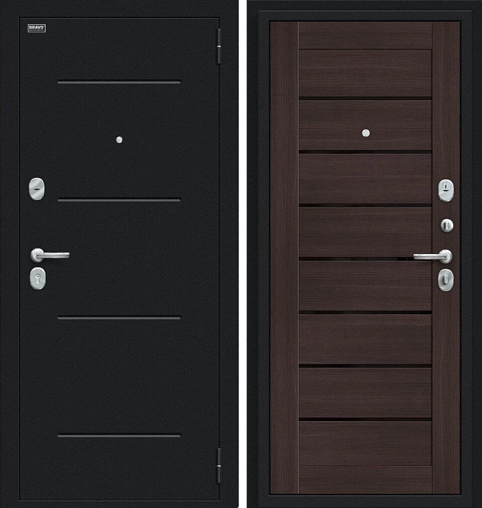 Надежная входная Дверь Браво Техно Букле черное/Wenge Veralinga премиум класса по цене 31 397 руб. Большая толщина стали защитит от проникновения в ваш дом, квартиру или коттедж. Используется очень качественная фурнитура: замки, цилиндры, ручки, защелки. Покрытие и отделка двери изготовлено под внимательным контролем производителя. Дверь имеет долгий срок службы и гарантию.