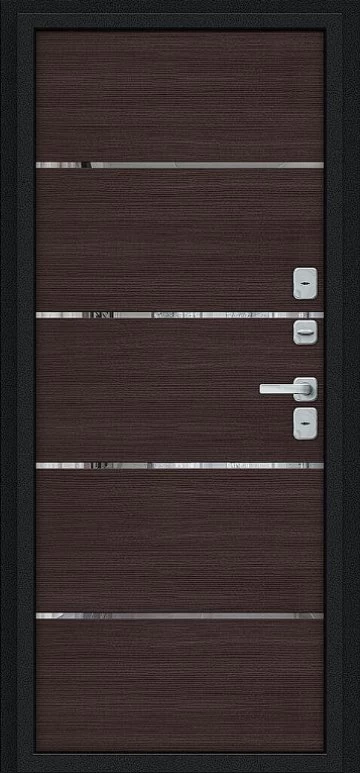 Надежная входная Дверь Браво Thermo Лайн/BChrome Букле черное/Wenge Melinga премиум класса по цене 46 297 руб. Большая толщина стали защитит от проникновения в ваш дом, квартиру или коттедж. Используется очень качественная фурнитура: замки, цилиндры, ручки, защелки. Покрытие и отделка двери изготовлено под внимательным контролем производителя. Дверь имеет долгий срок службы и гарантию.