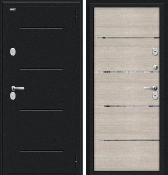 Надежная входная Дверь Браво Thermo Лайн Букле черное/Cappuccino Veralinga премиум класса по цене 47 897 руб. Большая толщина стали защитит от проникновения в ваш дом, квартиру или коттедж. Используется очень качественная фурнитура: замки, цилиндры, ручки, защелки. Покрытие и отделка двери изготовлено под внимательным контролем производителя. Дверь имеет долгий срок службы и гарантию.