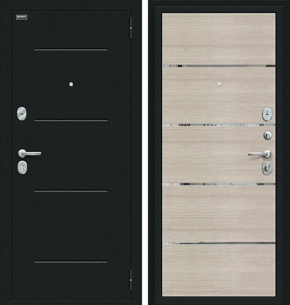 Надежная входная Входная дверь Лайн Букле черное/Cappuccino Veralinga BR4637 премиум класса по цене 30 595 руб. Большая толщина стали защитит от проникновения в ваш дом, квартиру или коттедж. Используется очень качественная фурнитура: замки, цилиндры, ручки, защелки. Покрытие и отделка двери изготовлено под внимательным контролем производителя. Дверь имеет долгий срок службы и гарантию.