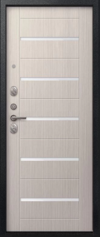 Надежная входная Дверь V-05 Черный муар - Лиственница светлая премиум класса по цене 42 047 руб. Большая толщина стали защитит от проникновения в ваш дом, квартиру или коттедж. Используется очень качественная фурнитура: замки, цилиндры, ручки, защелки. Покрытие и отделка двери изготовлено под внимательным контролем производителя. Дверь имеет долгий срок службы и гарантию.