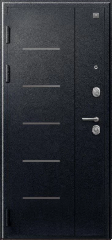 Надежная входная Дверь V-06 Черный муар - Лиственница темная премиум класса по цене 38 897 руб. Большая толщина стали защитит от проникновения в ваш дом, квартиру или коттедж. Используется очень качественная фурнитура: замки, цилиндры, ручки, защелки. Покрытие и отделка двери изготовлено под внимательным контролем производителя. Дверь имеет долгий срок службы и гарантию.