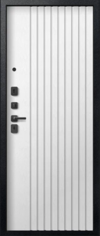 Надежная входная Дверь V-15 Черный муар + Бетон темный - Софт ясень белый премиум класса по цене 43 847 руб. Большая толщина стали защитит от проникновения в ваш дом, квартиру или коттедж. Используется очень качественная фурнитура: замки, цилиндры, ручки, защелки. Покрытие и отделка двери изготовлено под внимательным контролем производителя. Дверь имеет долгий срок службы и гарантию.